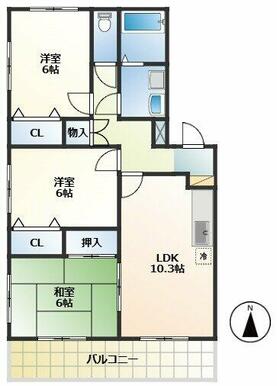 | 間取り | 3LDK(LDK10.5、和6、洋6、洋6) | 主要採光面 | 南 |